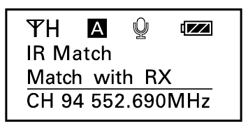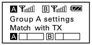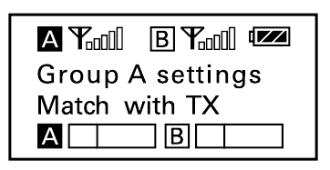 - Użyj przycisku + lub –, aby wyświetlić menu "Match with TX" ("Dopasuj do TX") na odbiorniku.