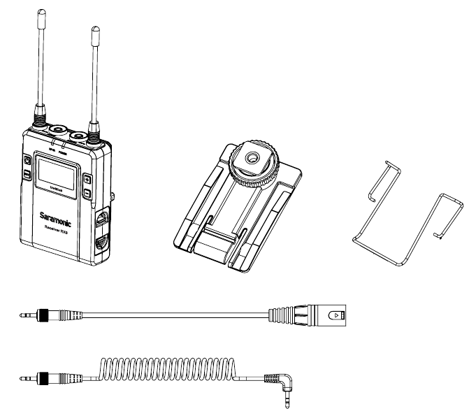 Podłącz RX9 do kamery wideo, kamery, miksera lub wzmacniacza za pomocą dostarczonego kabla wyjściowego. - Standardowa zimna stopka (Standard cold shoe)