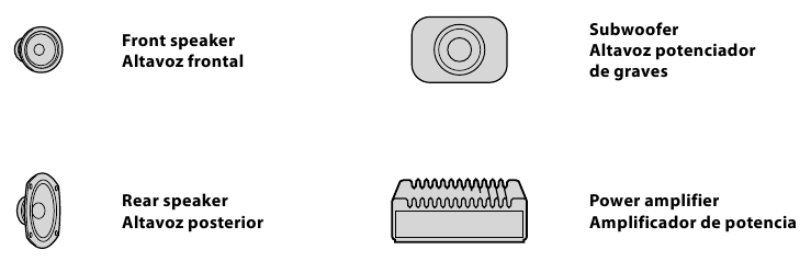 - Używaj głośników o impedancji od 4 do 8 omów i o odpowiedniej mocy, aby uniknąć uszkodzeń.
