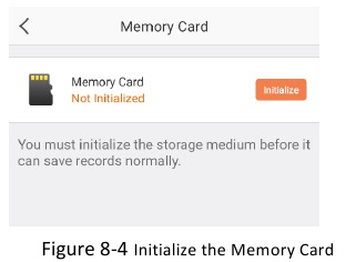 - Dotknij Storage Status (Stan pamięci) -> Memory Card (Karta pamięci), a następnie dotknij przycisku Initialize (Inicjalizuj), aby zainicjować kartę.