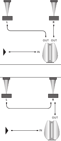 Poprowadzenie sygnałów z głośnika do głośnika: Aby uniknąć prowadzenia kabli z obu przednich głośników do subwoofera, możesz poprowadzić sygnał z głośnika do głośnika.