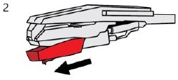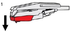 - Delikatnie pociągnij w dół przednią krawędź igły.