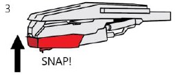 - Włóż igłę przednią końcówką pod kątem w dół i delikatnie unieś przód igły, aż zatrzaśnie się na swoim miejscu.