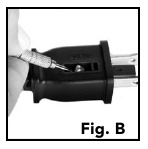 - Wyjmij bezpiecznik za pomocą śrubokręta, aby delikatnie podważyć każdy koniec bezpiecznika (patrz rys. B).