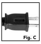 - Zasuń pokrywę bezpiecznika za pomocą śrubokręta. Po zamknięciu pokrywa powinna całkowicie pasować do wtyczki. Żadna część pokrywy nie powinna wystawać (patrz rys. C).