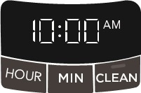 Podłącz ekspres do kawy i ustaw aktualny czas za pomocą przycisków godzin i minut. 5 sekund braku aktywności ustawi zegar na wybrany czas.