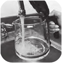 - Napełnij karafkę świeżą, zimną wodą do żądanego poziomu. 1 "filiżanka" Sunbeam odpowiada 150 ml. Wlej do zbiornika na wodę.