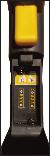 - Komora baterii (zawiera przełącznik ºF/ºC)