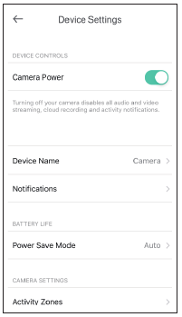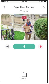 Dotknij kamery na stronie Devices (urządzenia) lub Cameras (kamery), a następnie możesz wyświetlić wideo na żywo, porozmawiać z osobą znajdującą się w pobliżu kamery, włączyć syrenę, aby odstraszyć intruzów, i wiele więcej.