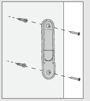 Jeśli instalujesz w płycie gipsowo-kartonowej, wywierć dwa otwory o szerokości 9/64 cala (3,57 mm), używając uchwytu kołyski jako prowadnicy. Delikatnie wbij dołączone kotwy do płyt gipsowo-kartonowych w wywiercone otwory.