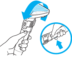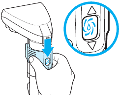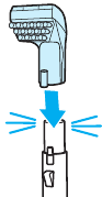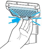 - Pociągnij dolny zatrzask, aby zwolnić blok z włosiem z narzędzia.