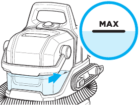 - Opróżnij zbiornik na brudną wodę, gdy woda osiągnie linię "MAX". Nie przepełniaj zbiornika wodą.
