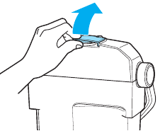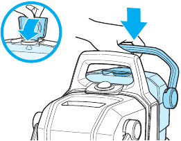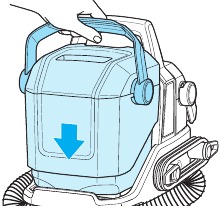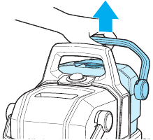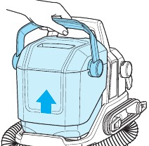 - Wyjmij zbiornik na czystą wodę z urządzenia, podnosząc uchwyt do przenoszenia.