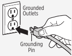 - Podłączaj tylko do prawidłowo uziemionego gniazdka. Patrz instrukcje dotyczące uziemienia. Nie modyfikuj trójbolcowej wtyczki uziemiającej.