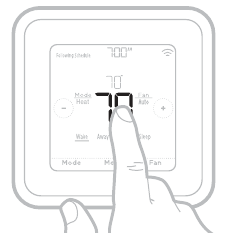 - Toque em Mode (Modo) na tela inicial do termostato até que Auto apareça. Em seguida, toque em