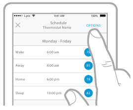 - Toque no dispositivo Lyric que você deseja incluir em suas configurações de férias e ajuste suas temperaturas preferidas. Quando terminar, toque na seta para trás para salvar suas alterações.