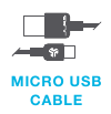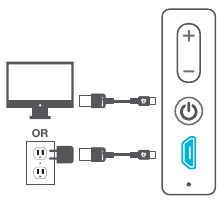 Conecte o Micro USB (incluído) ao fone de ouvido e conecte o USB a um computador ou adaptador AC (não incluído). Certifique-se de que a conexão USB tenha uma fonte de saída de energia.