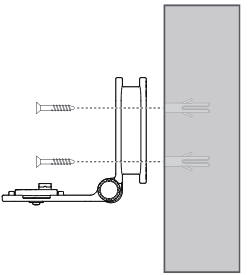 - Alinhe o suporte de montagem na parede e os parafusos com os furos na parede, conforme mostrado. Aperte primeiro o parafuso no furo do meio, para que a posição do suporte de montagem na parede fique fixa. Você pode apertar o outro parafuso no furo superior.