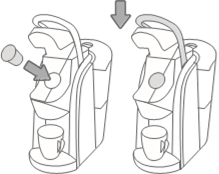 Levante a alça e coloque uma cápsula K-Carafe® no suporte da cápsula.