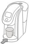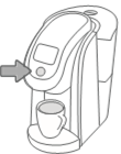 Água Quente: Para dispensar água quente em uma caneca, levante e abaixe a alça sem inserir uma cápsula K-Cup®. Selecione o tamanho da sua xícara e pressione o botão de preparo piscando para dispensar água quente.