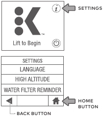 Explore tudo o que sua cafeteira Keurig® Plus Series tem a oferecer acessando o Menu de Configurações. Na tela inicial, selecione o botão de configurações.