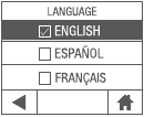 Pressione Inglês (English), Espanhol (Spanish) ou Francês (French) para selecionar o idioma.