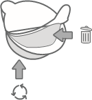 - Depois de separados, descarte a tampa e o filtro anexado. Recicle o copo de plástico onde o plástico #5 for aceito.