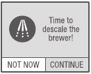 Dependendo do teor mineral da sua água, depósitos de cálcio ou incrustações podem se acumular na sua cafeteira. A incrustação não é tóxica, mas, se não for tratada, pode prejudicar o desempenho da cafeteira. A descalcificação regular da sua cafeteira a cada 3 a 6 meses ajuda a manter o elemento de aquecimento e outras peças internas que entram em contato com a água. Os depósitos de cálcio podem se acumular mais rapidamente, tornando necessário descalcificar com mais frequência. Você deve descalcificar imediatamente quando a tela sensível ao toque indicar "Time to descale the brewer!" ("Hora de descalcificar a cafeteira!")