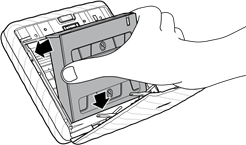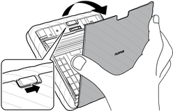 - Ao carregar o pacote de filme, nunca pressione os dois orifícios retangulares na parte de trás do pacote de filme.