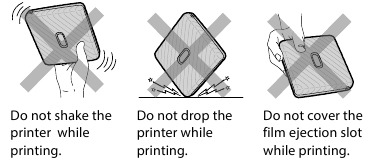- Se a pasta dentro do filme entrar em contato com a pele ou roupas, lave imediatamente com bastante água. Se a pasta entrar em contato com os olhos ou a boca, lave imediatamente a área com bastante água e entre em contato com um médico. Observe que o alcalino dentro do filme permanece ativo por cerca de 10 minutos após a impressão da foto.