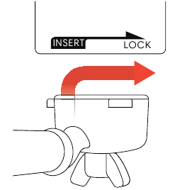 Coloque o porta-filtro sob o cabeçote do grupo de forma que a alça esteja voltada para si e alinhada na posição INSERT (inserir). Insira o porta-filtro no cabeçote do grupo e gire a alça em direção ao centro até sentir resistência.