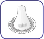 Observação: O Braun ThermoScan não funcionará a menos que um filtro de lente esteja conectado. - Selecione a idade com o botão Age Precision (Precisão de Idade)