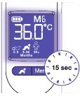 Consulte a seção «Erros e solução de problemas» para obter mais informações. - O bipe de confirmação indica que uma medição de temperatura precisa foi feita.