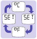 . Após cerca de 3 segundos, o visor mostrará esta sequência: °C / SET / °F / SET.