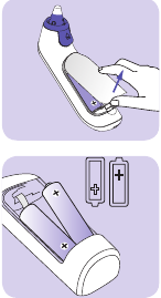 O termômetro é fornecido com duas pilhas de 1,5 V tipo AA (LR 06). Para melhor desempenho, recomendamos pilhas alcalinas Duracell ®.