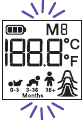 ![]() | A bateria está fraca, mas o termômetro ainda funcionará corretamente. | Insira novas pilhas. |