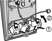 - Coloque o cabo da linha telefônica dentro do adaptador de montagem na parede e empurre-o na direção da seta (