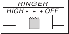 - Defina o seletor RINGER (CAMPAINHA) para HIGH (ALTO), LOW (BAIXO) ou OFF (DESLIGADO).