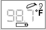 ![]() | A pilha está fraca, mas o termômetro ainda funcionará corretamente. (Sem função de luz nos modelos IRT 3020.) | Insira novas pilhas |