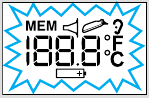 ![]() | A pilha está muito fraca para medir as temperaturas corretamente. | Insira novas pilhas |