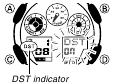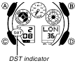 - O indicador DST aparece para indicar que o Horário de Verão está ativado.