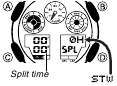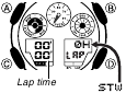(tempos parciais) seja exibido no visor inferior direito. - Se você precisar reiniciar o cronômetro para todos os zeros, pressione A.