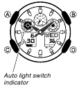 - O indicador do interruptor de luz automático permanece em todos os modos enquanto o interruptor de luz automático está ligado.