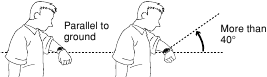 - A iluminação pode não ligar se o mostrador do relógio estiver mais de 15 graus acima ou abaixo do paralelo. Certifique-se de que a parte de trás da sua mão esteja paralela ao chão.