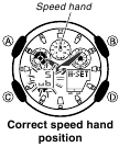 O ponteiro de velocidade e os ponteiros de horas e minutos do relógio podem ser deslocados pela exposição a forte magnetismo ou impacto. O relógio foi projetado para corrigir a velocidade, as horas e os minutos manualmente.