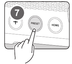 Depois de sintonizar uma estação, pressione e segure o botão Preset (Predefinir) por 2-3 segundos e solte para entrar no menu de configuração predefinida. Neste menu, use os botões Up (Para cima), Down (Para baixo) e Select (Selecionar) para selecionar e confirmar o número predefinido necessário.