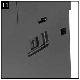 - Remova a unidade de preparo pressionando o botão vermelho e girando a alça totalmente para a esquerda até que ela se encaixe no lugar (fig. 12).