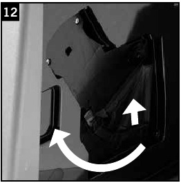 - Feche a porta de serviço e, ao fazê-lo, coloque cuidadosamente os pivôs na parte de trás da porta nas ranhuras. Certifique-se de que a porta (fig. 1/M) se encaixe completamente de volta no lugar.