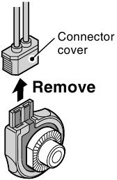 - Ao remover a roda da bicicleta, primeiro remova a tampa do conector. Se os cabos forem puxados com força, isso pode quebrar os fios do cabo ou causar contatos ruins. Além disso, ao instalar a roda, primeiro prenda a roda nos garfos dianteiros e, em seguida, conecte a tampa do conector.