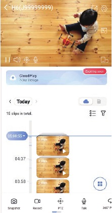 | Lista de registros | Você pode ver a capacidade do cartão micro SD, o espaço usado e o espaço livre aqui, e também pode ativar ou desativar o serviço de armazenamento em nuvem aqui. |